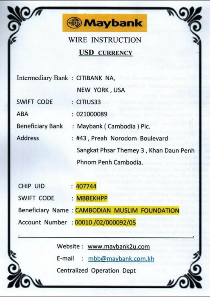 Cambodian Muslim Foundation official bank account